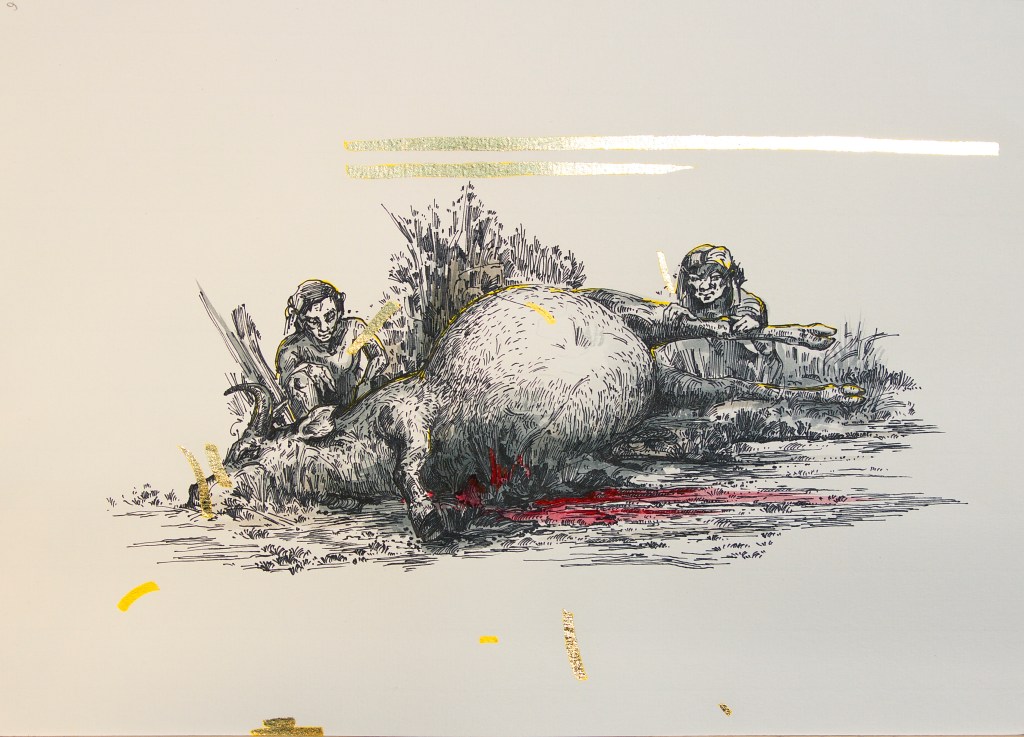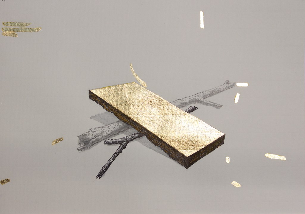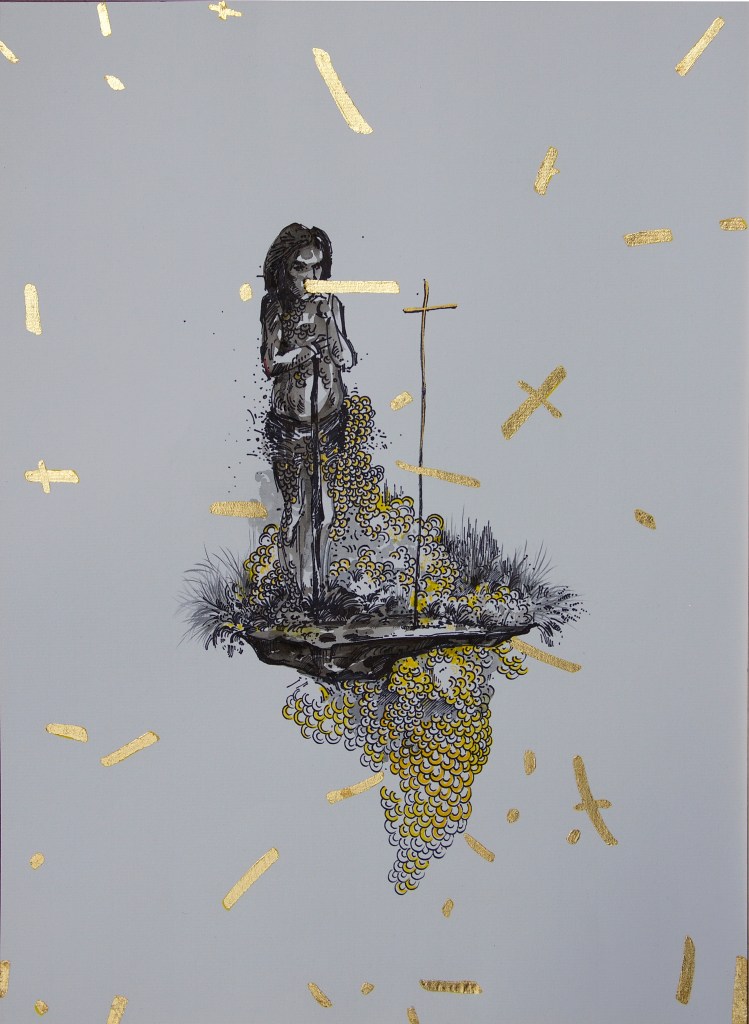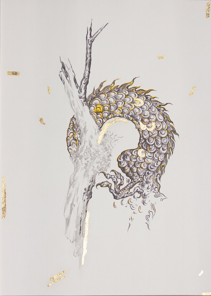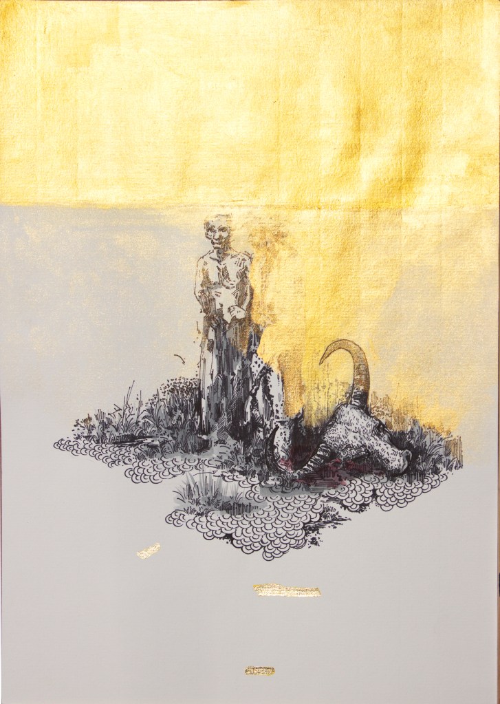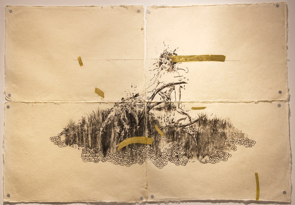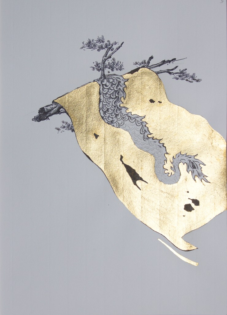 Ink, gold leaf, and watercolor on paper