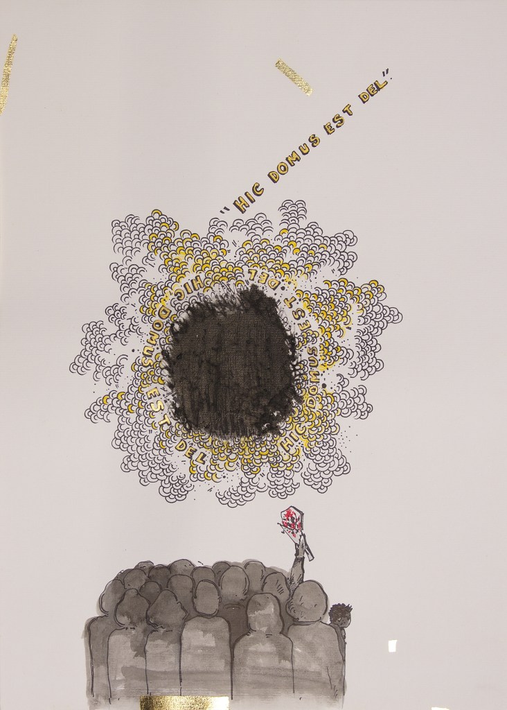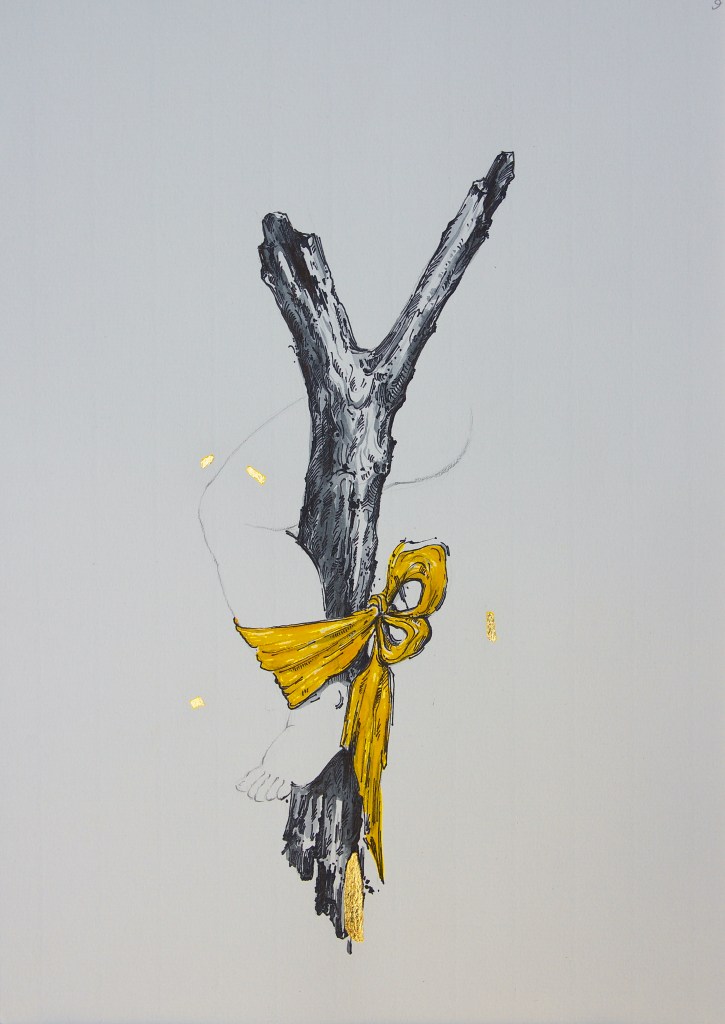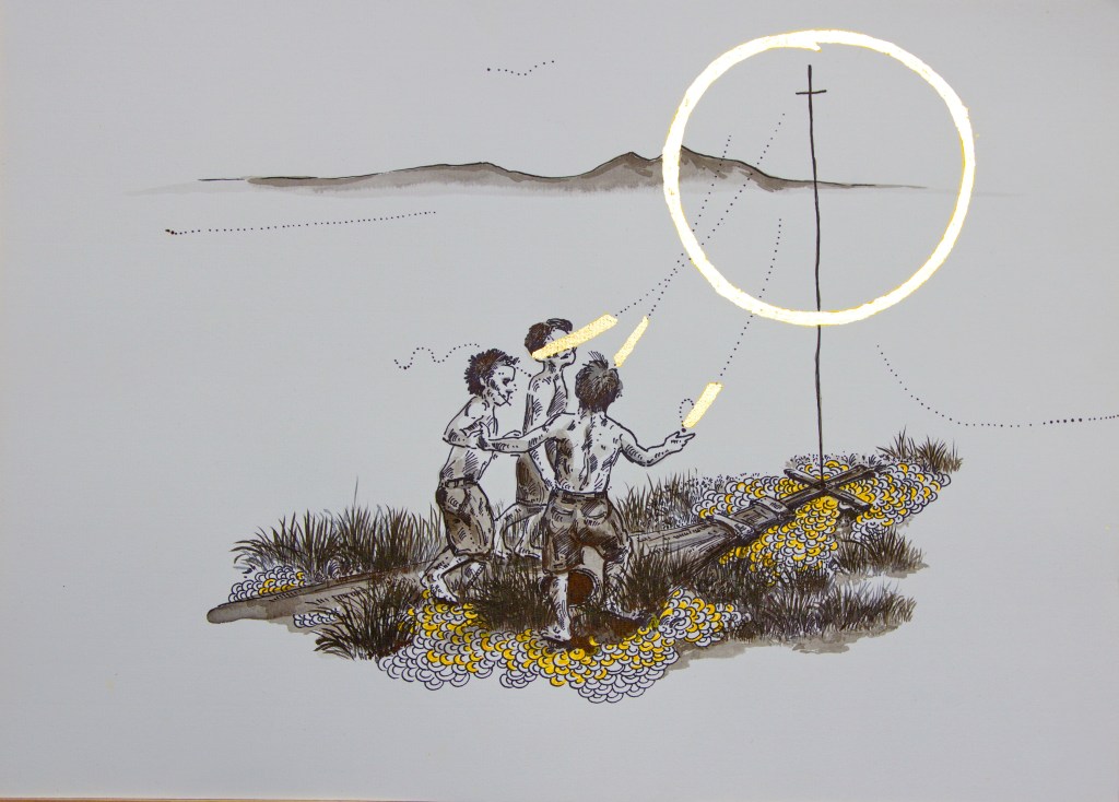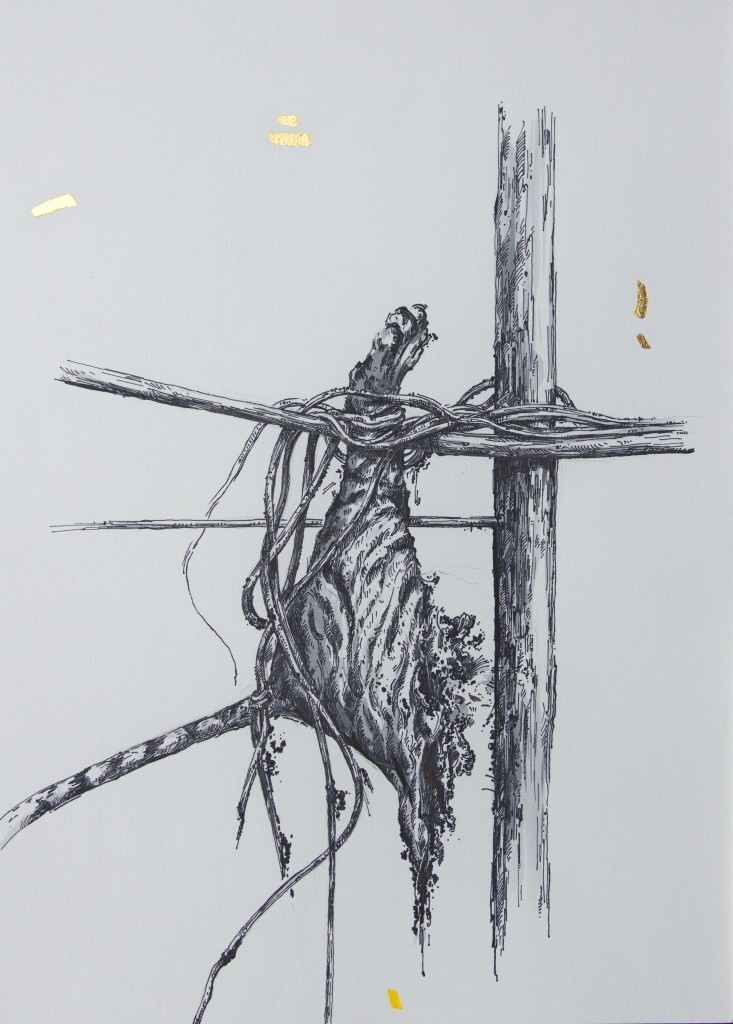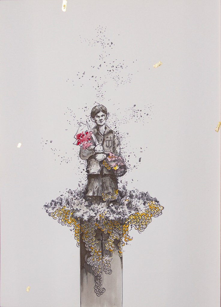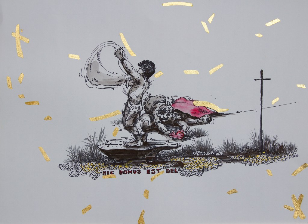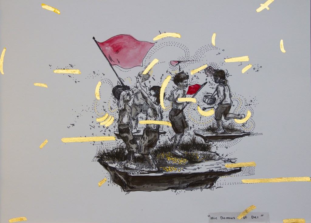 Ink, gold leaf, and watercolor on paper