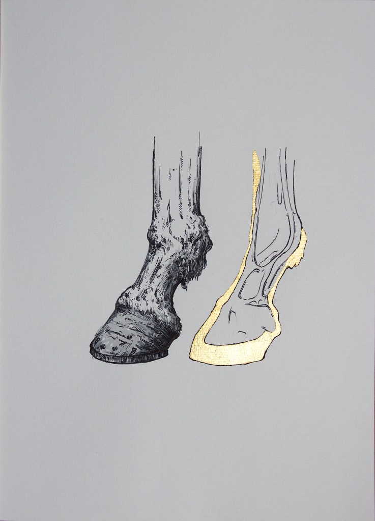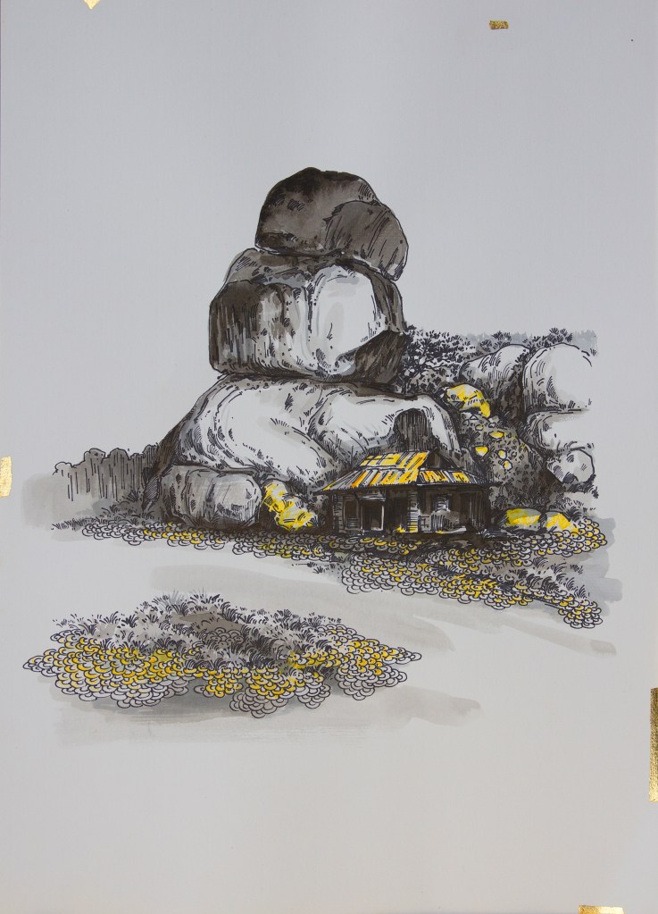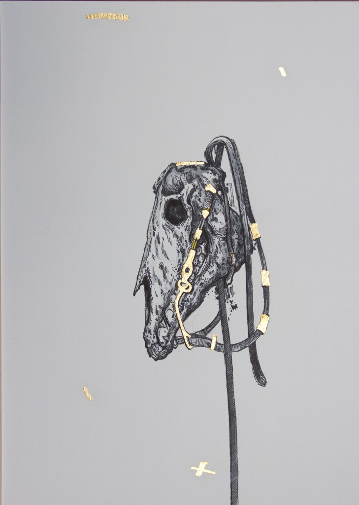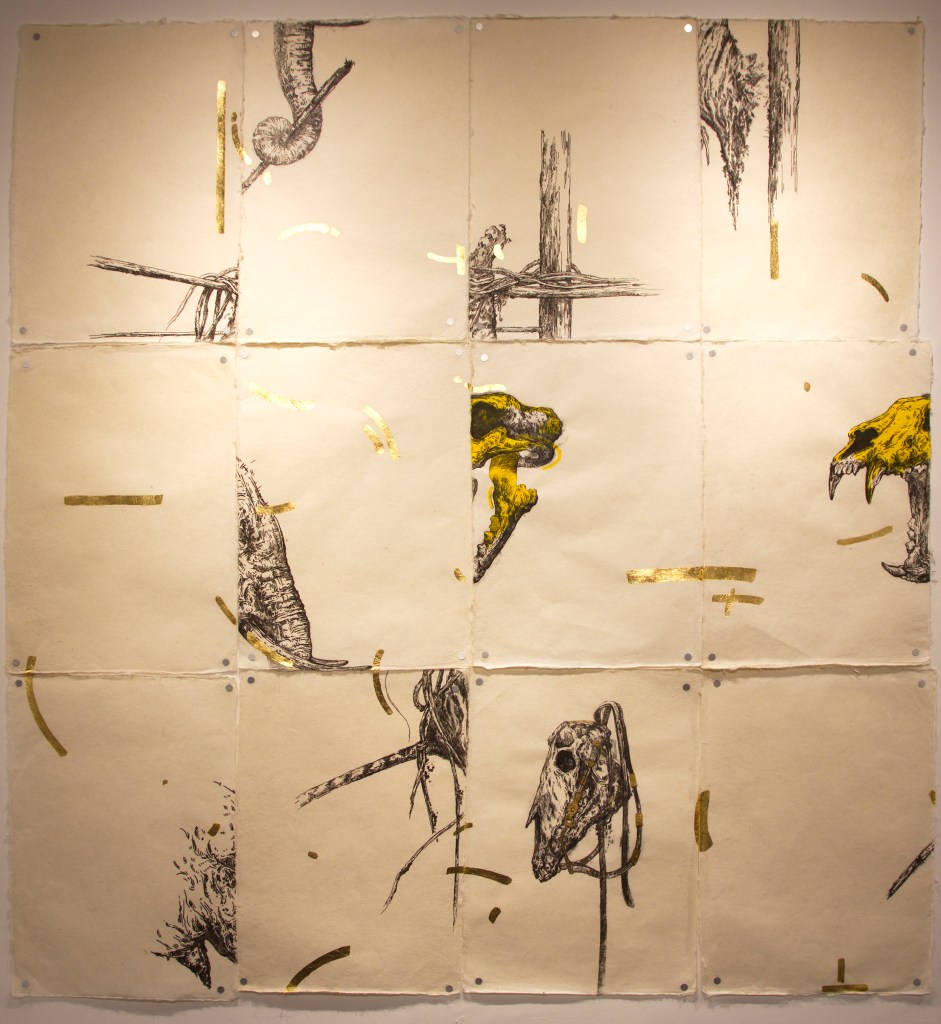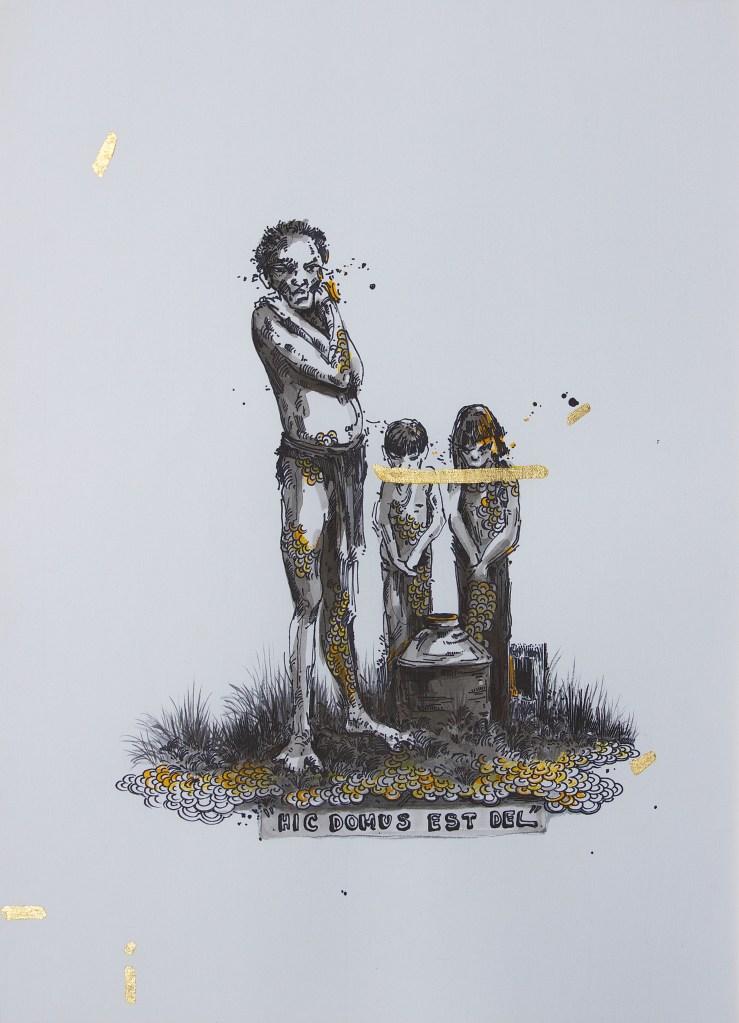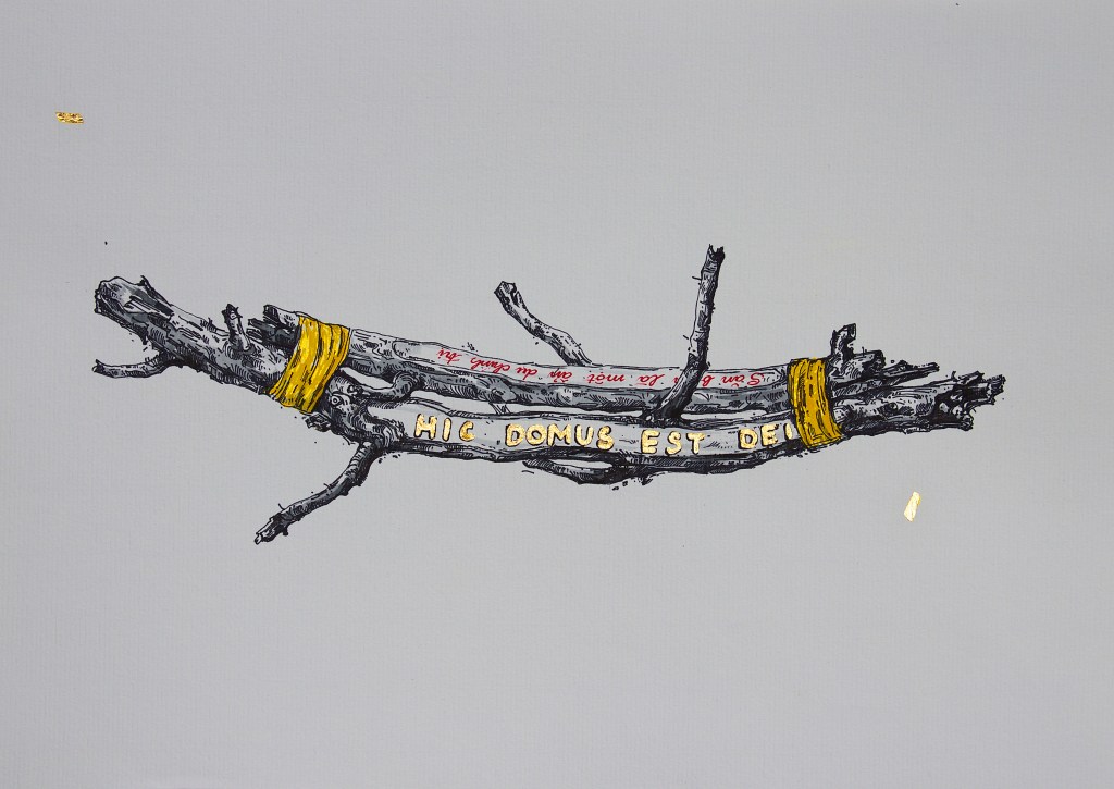 Ink, gold leaf, and watercolor on paper