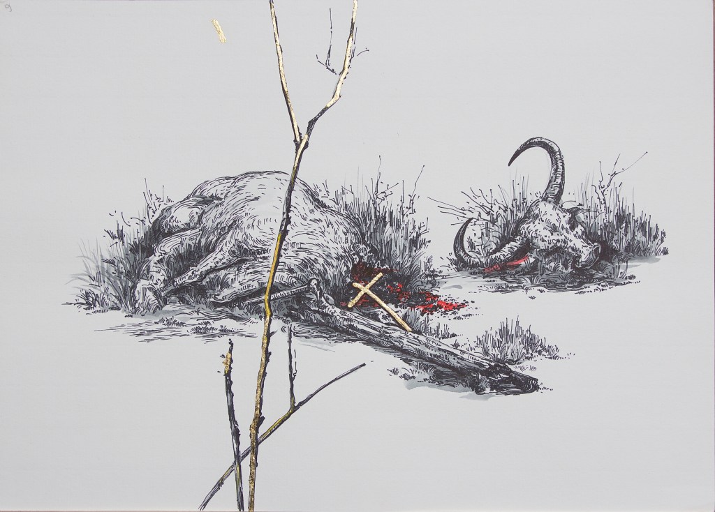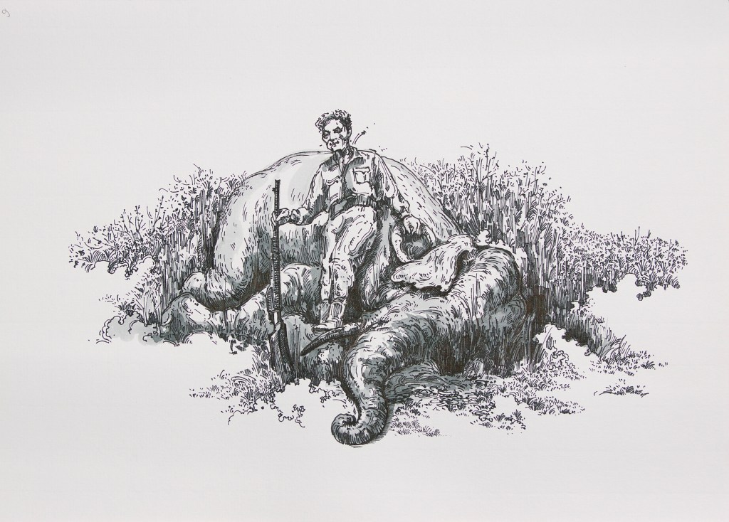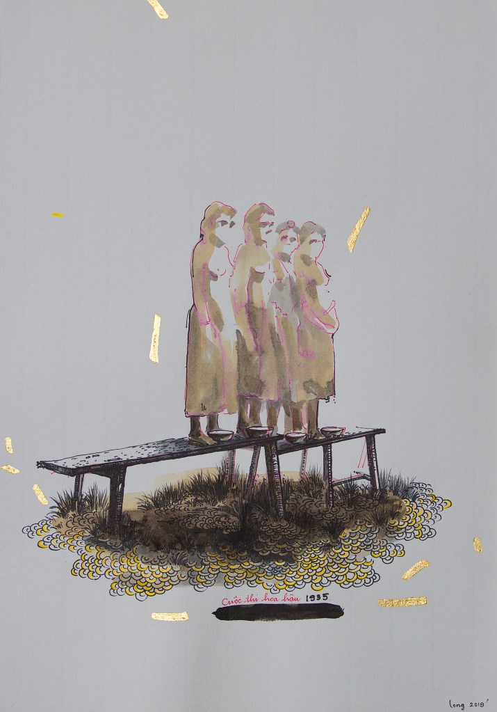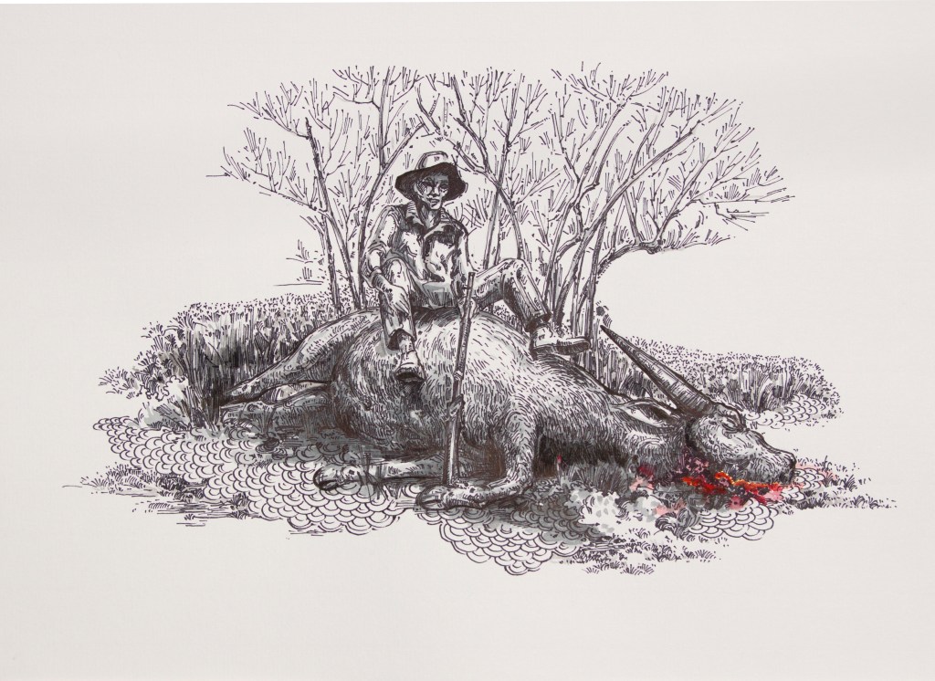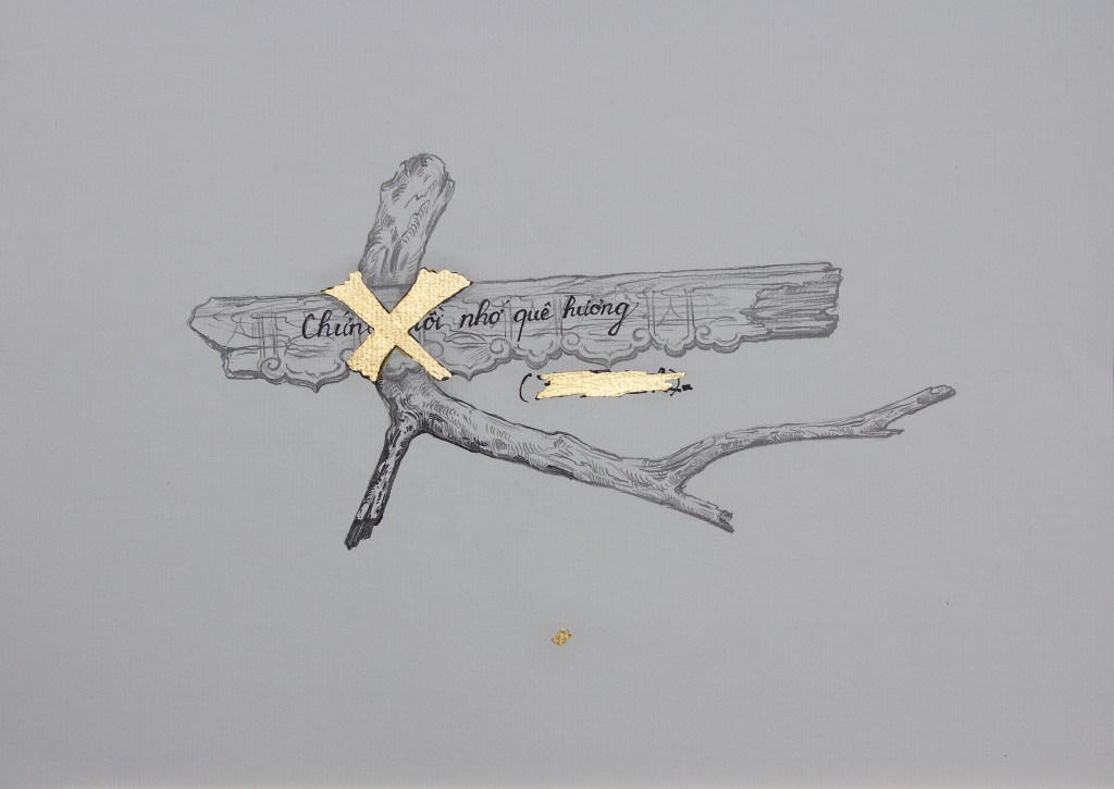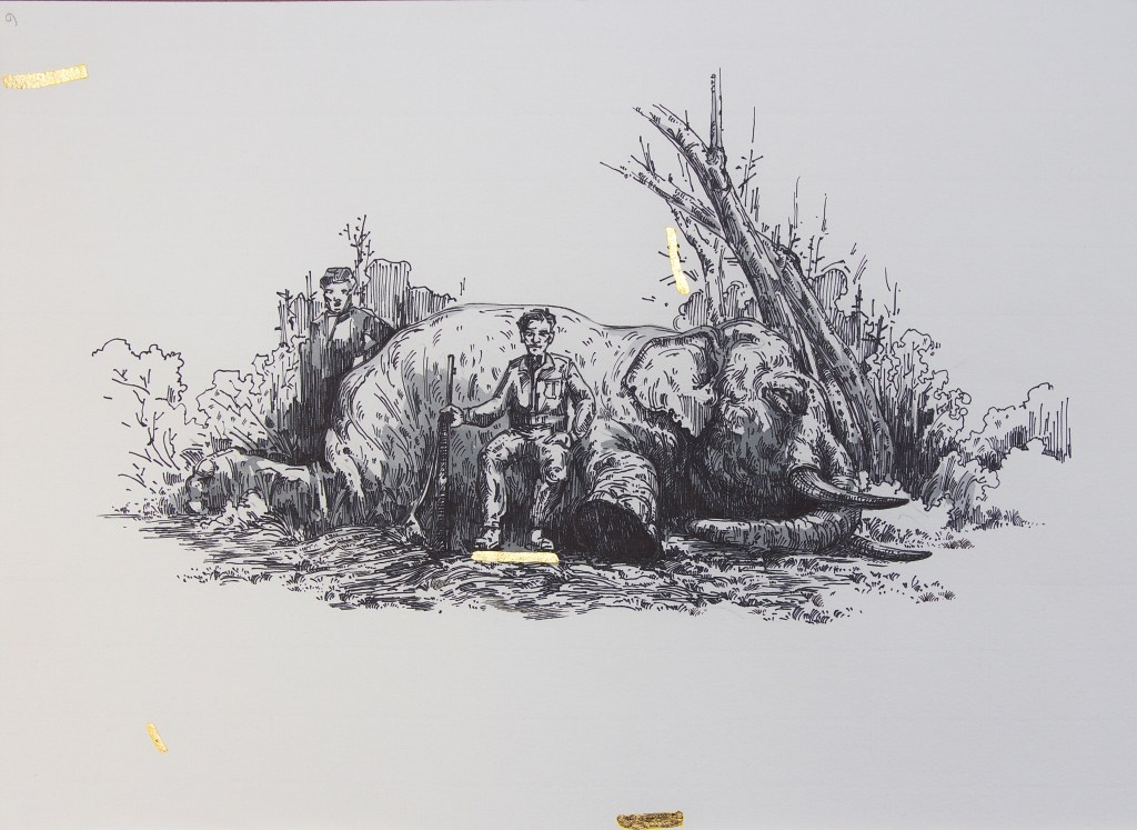 With its title referring to the research of historian Eric Jennings, the series Hunting as a metaphor for politics belongs to Le Phi Long’s project Dong Duong Lang Du. From the historical and sociological investigation which the artist has been conducting since 2016 in Dalat (Central Highlands, Vietnam) and France, the project focuses on unpacking the ambition of colonial powers by highlighting France’s political plans from the late 19th century to the early 20thcentury in Vietnam. For this series, the artist samples architectural drawings and construction plans of colonial buildings, re-interpreting old postcards and illustrations from hunting catalogs and archivalpictures. By doing so, he aims to decipher and re-interpret the establishment of Western influence in Vietnam, as well as attemptingto transform his work into a space to contemplate issues of historical legacy and consequences.